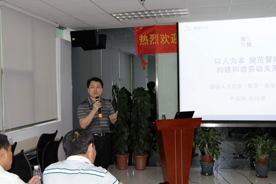 (尹慶陽(yáng)與來賓們分享了主題為《以人為本 規(guī)范管理 構(gòu)建和諧勞動(dòng)關(guān)系》的演講)